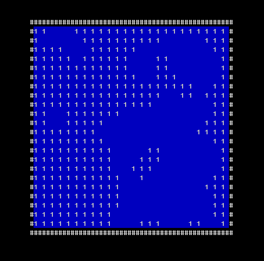 And now it will render the map in a blue box. Each time we press enter it will generate a new map.